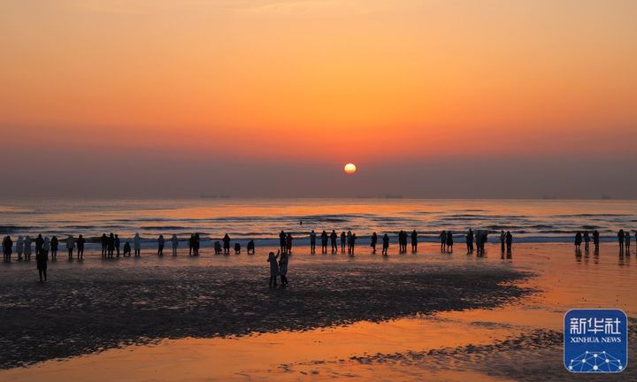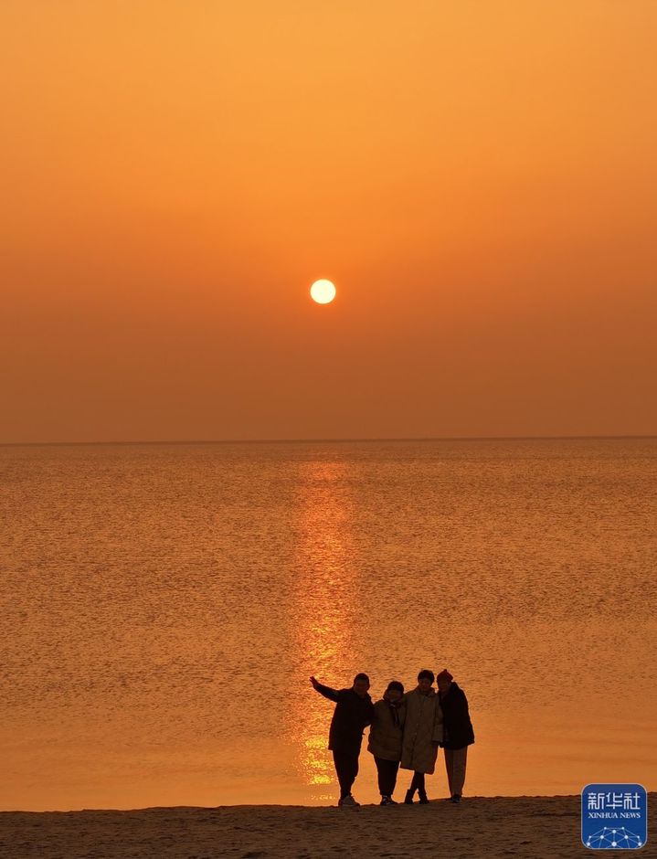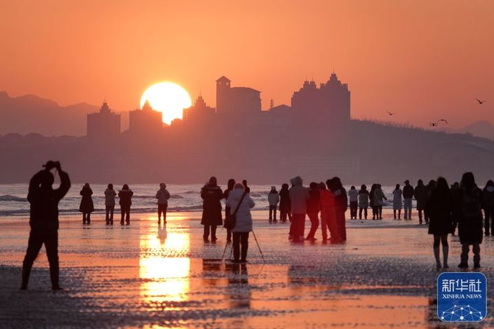 1月1日,市民在河北省秦皇岛市北戴河区浅水湾浴场海滩观看日出。新华社发(刘城 摄)