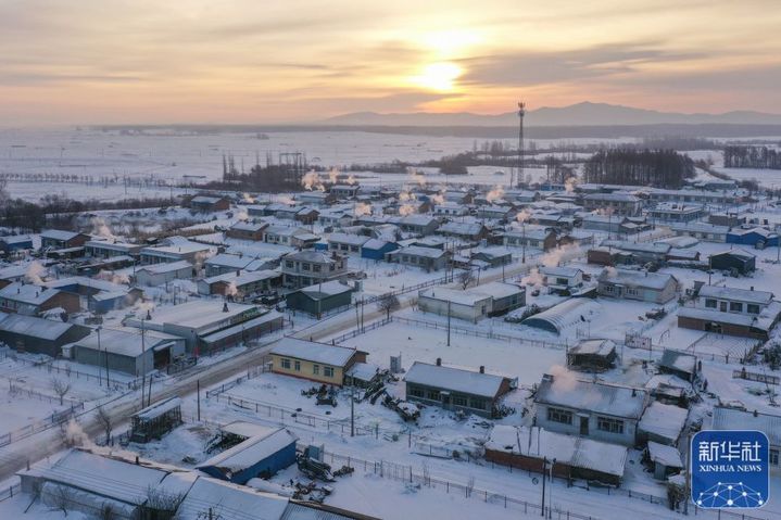 这是1月1日拍摄的黑龙江省尚志市老街基乡龙王庙村日出景观(无人机照片)。新华社发(宋洋 摄)