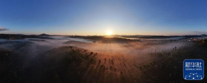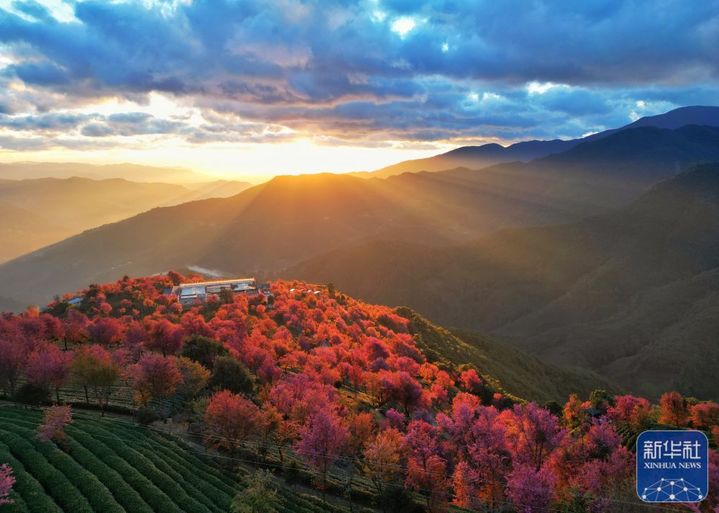 1月1日,位于云南省大理白族自治州南涧彝族自治县的无量山樱花谷迎来2024年第一缕阳光(无人机照片)。新华社发(适志宏 摄)