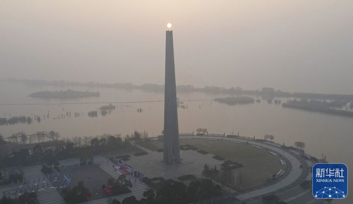 这是1月1日在安徽省合肥市渡江战役纪念馆附近拍摄的晨光(无人机照片)。新华社记者 周牧 摄