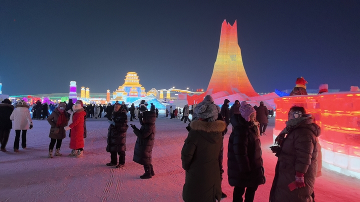 哈尔滨冰雪大世界游人如织冰版画