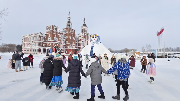 在伏尔加庄园,40多座欧式建筑在白雪的映衬下绰约多姿,吸引了众多游客和市民到此奔赴冰雪之约。乘坐雪圈从五层高的城堡飞驰而下,感受城堡滑雪的速度与激情,品尝俄式美食……来自省内外的游客们玩得不亦乐乎。