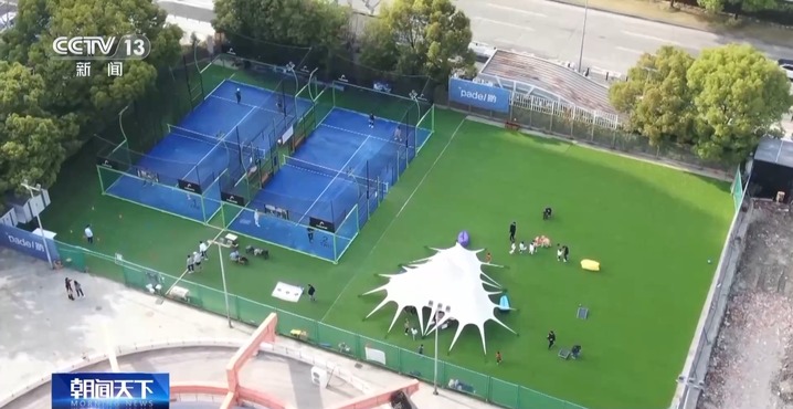 在上海浦东的创意园区内,藏着一个板式网球和匹克球的运动场,不少人结伴前来体验。