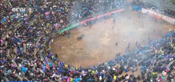 近日,贵州黔东南州从江县举办传统斗牛活动。现场气氛热烈,吸引了上万村民和游客观看。