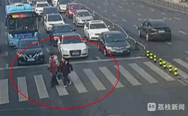 热心市民孙 怡说:“我停在第一排中间的位置,一开始不知道发生什么事情,看到左边司机大哥冲下去,才发现有老人摔倒了。我也立马下车,跟司机大哥一起扶老人过了马路。当时,所有车辆都没有着急,跟着我们一起等老人安全过了马路。”
