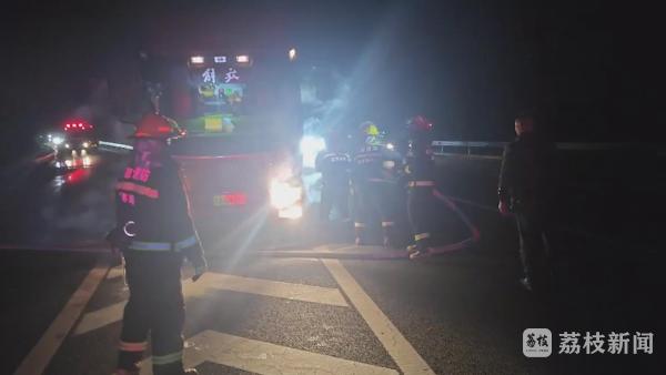 昨天(1月7日)晚上,江苏省扬州市119指挥中心接到报警称:扬州市广陵区广陵收费站入口往南京方向处货车轮胎起火,接警后扬州市119指挥中心立即调派金韵路消防救援力量前往现场进行救援。
