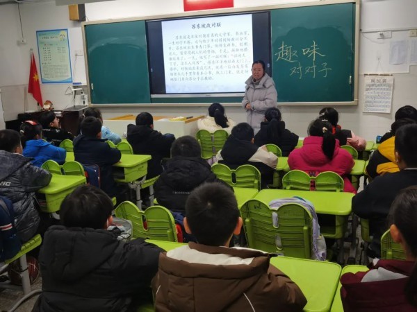 以文化人,以美育人。各类兴趣课精彩纷呈,妙趣横生。学生在“趣味对对子”“古诗配画”“说唱古诗”等兴趣课中,不仅能感受祖国语言文字的魅力,还能让学生继承和发扬祖国灿烂的诗歌文化,既丰富了校园文化,美化了校园语言环境,也进一步丰厚了学生语文知识积累。