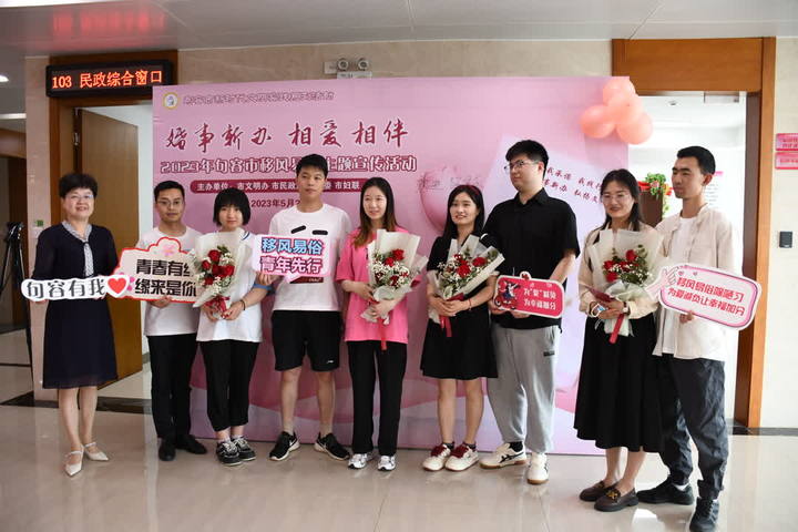 为爱赋能,近年来镇江市围绕文明婚俗理念普及、婚姻家庭辅导积极作为。各地民政部门联合文明办、妇联、团市委、工会等部门成立婚俗改革志愿者服务队,通过发放宣传册,举办移风易俗公益相亲会等形式,引导群众对“简约文明、轻财重礼”新婚俗的认同;发挥基层自治组织作用,将婚俗改革、喜事新办等内容纳入村规民约,运用好创建文明家庭、“文明积分”等奖励模式,引导简约文明办婚。