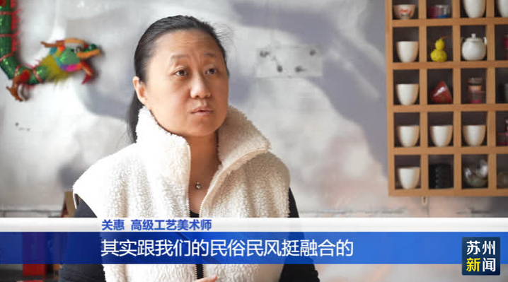 “虎丘泥人与民俗民风十分融合,例如今年龙年将会出的萌萌小龙哨,它就跟我们民俗包括我们的市场相融,未来要做出苏州当地特色的非遗文创产品”,高级工艺美术师关惠说。