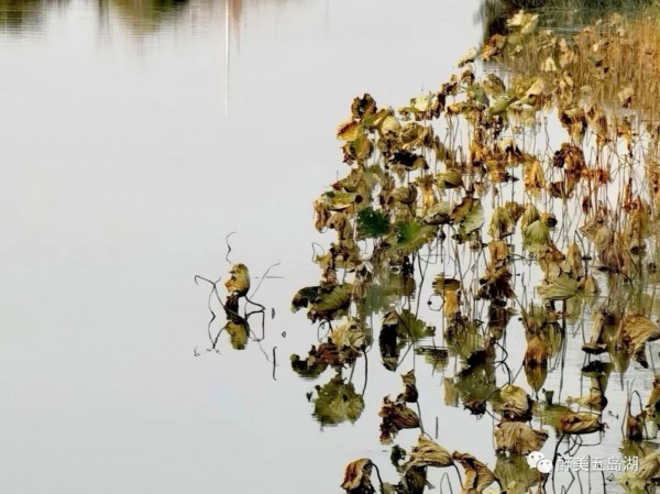 荷尽已无擎雨盖,菊残犹有傲霜枝。曾经接天莲叶无穷碧的荷叶,现在也枯萎了,在水面上横陈着,蜷缩着,真可谓是“一花一世界,一岁一枯荣”!一种生命的终结,也意味另一种生命的开始。