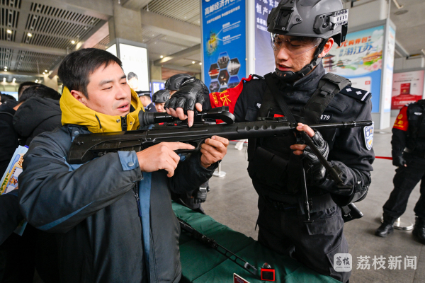 现场表演活动结束后,前来参加警营开放日活动的旅客纷纷走进主会场。他们在南京南站地区各所队设置的110宣传区、反诈宣传区、反诈游戏体验区、特警装备展示区纷纷驻足,“沉浸式”体验活动的精彩。
