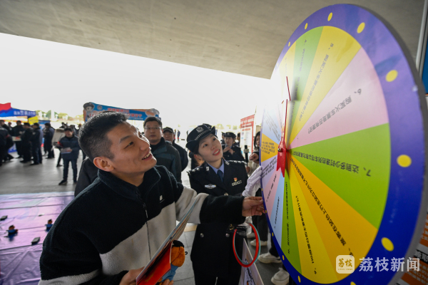 在宣传区域,民警耐心向旅客群众介绍了110受理范围、如何正确报警以及见义勇为工作运行机制、防范电信网络诈骗、反恐宣传,宣传普及法律法规知识、安全防范常识等知识,进一步强化了公民的110报警常识,展现了新时代公安机关形象。民警们还在各个宣传区域设置了盖章打卡点,每当旅客深度参与了宣传活动和答对了民警提出的反诈知识题目,都会在自己的“集章卡”上得到民警盖的纪念章,当集齐了五枚印章之后,就可以在游戏体验区域参与套圈赢礼品活动,进一步调动了现场旅客的参与热情。