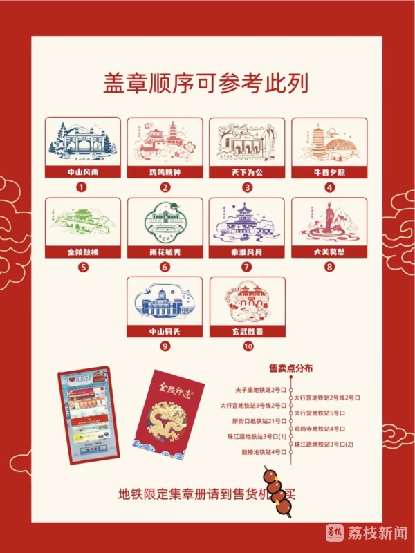 南京地铁此次推出10枚彩章,包含中山陵、鸡鸣寺、总统府、莫愁湖、牛首山、雨花台等十处南京景点。