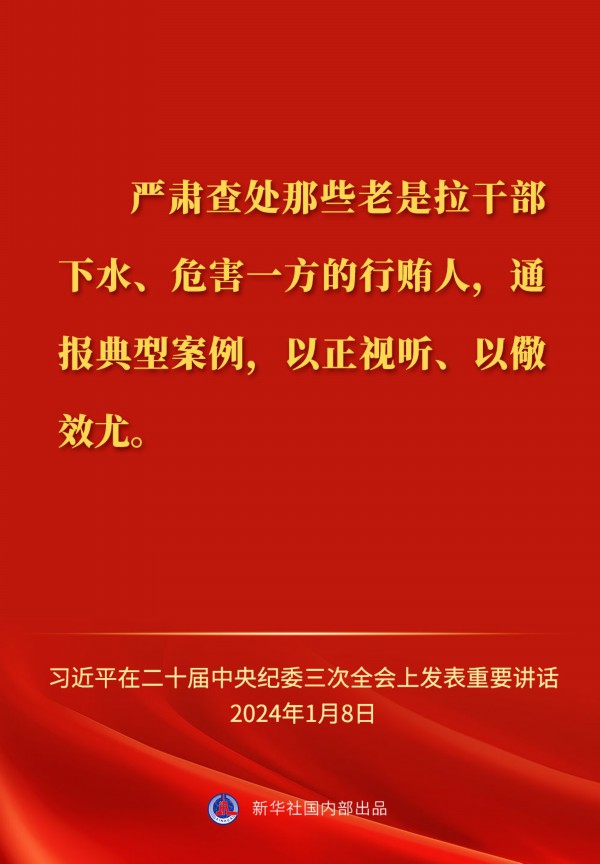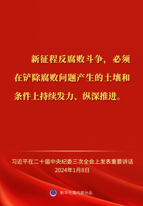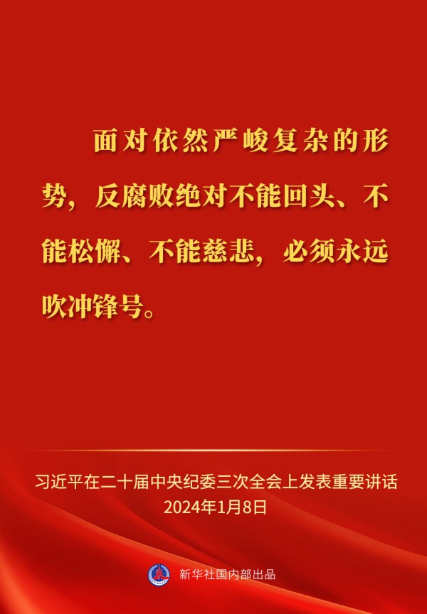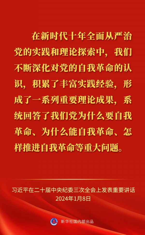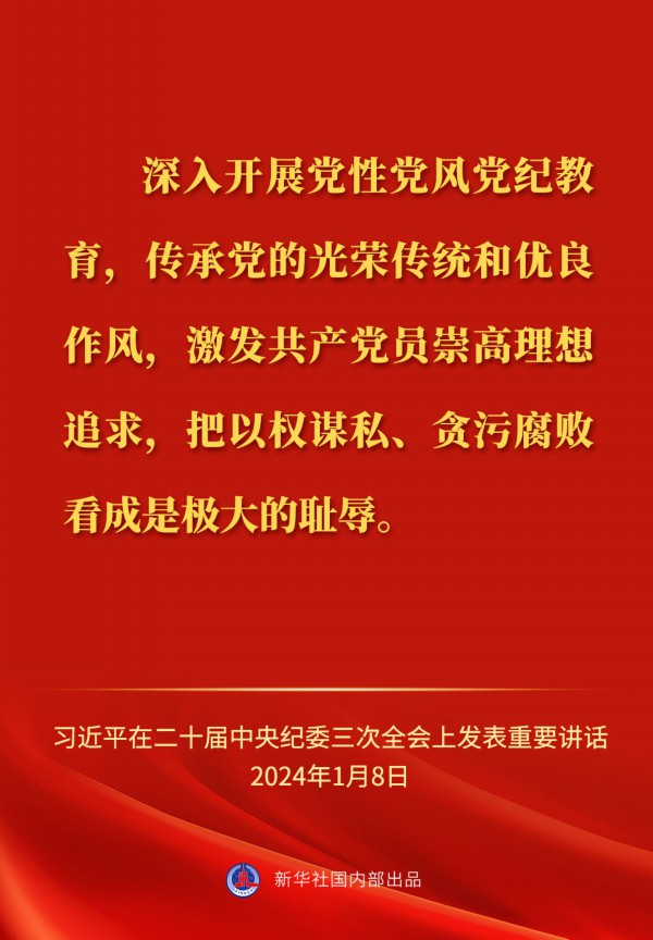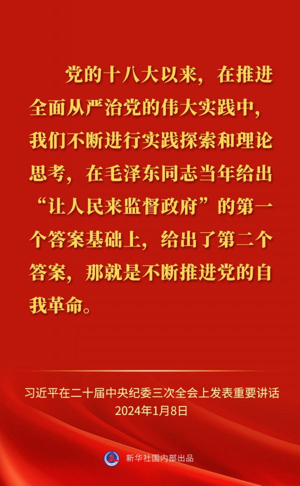 中共中央总书记、国家主席、中央军委主席习近平8日上午在中国共产党第二十届中央纪律检查委员会第三次全体会议上发表重要讲话,一起来看金句。