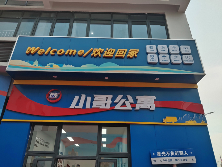 为了让为扬城市民保供的司机们有一个“家”,在广陵区委组织部的大力支持下,沙头镇在联谊农副产品批发市场内建设了“小哥公寓”。“小哥公寓”占地面积约4000平方米,上下共5层楼,整体分为服务接待区、健身活动区、阅读休闲区、洗衣晾晒区、生活住宅区5个区域,可提供84间公寓服务,包括普通单人间、舒适单人间、标准双人间、四人间4种房型,适用于不同群体的需求。公寓内还专门配备了“健康三件套”和“文体三件套”,健身房、洗衣房、乒乓球室、台球室、阅读区、休闲按摩椅等共享服务设施,生活所需设备设施齐全,可实现自由拎包入住。