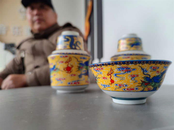 “收藏的东西并不一定很贵重。”张玉顺介绍,他收藏的几个喜碗喜碟,上面就有龙图案,这种有龙凤图案的喜碗喜碟,曾在扬州比较流行,很多人家婚嫁时都会买它,“我们那时叫厨房‘小七件’。”