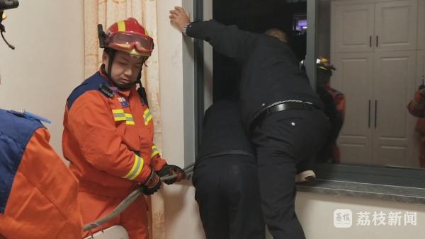 消防员了解情况后,迅速分组进行救援,第一组消防员在楼下、楼上分别设置警戒区,疏散现场围观群众;第二组消防员携带安全绳和安全腰带迅速进入楼内,为窗口的民警和老人一并做好安全防护,防止坠落。