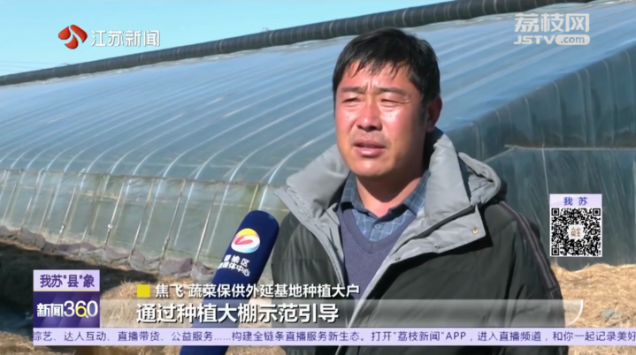 蔬菜保供外延基地种植大户焦飞说:“通过种植大棚示范引导,带动了周边农民发展绿色高效规模种植的积极性。”