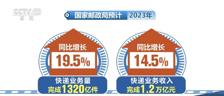 国家邮政局预计,2023年,邮政行业寄递业务量和邮政行业业务收入分别完成1620亿件和1.5万亿元,同比分别增长16.5%和13.5%。其中,快递业务量和业务收入分别完成1320亿件和1.2万亿元,同比分别增长19.5%和14.5%。