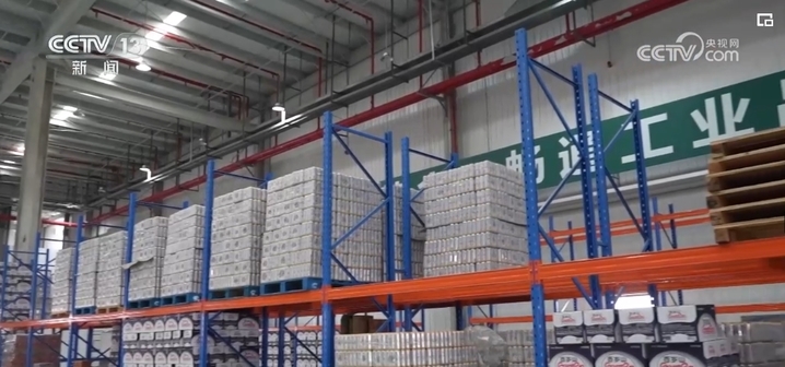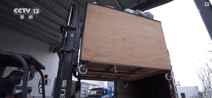在浙江长兴的一家企业厂房里,厂家工作人员根据订单快速分发、贴单、装货;快递小哥则在一楼出货区,将叉车上的货物运上邮政货车。