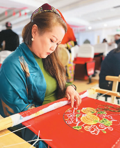 指着那幅刺绣作品,卡德尔笑着告诉记者:“现在,我和绣娘的花都开了!”