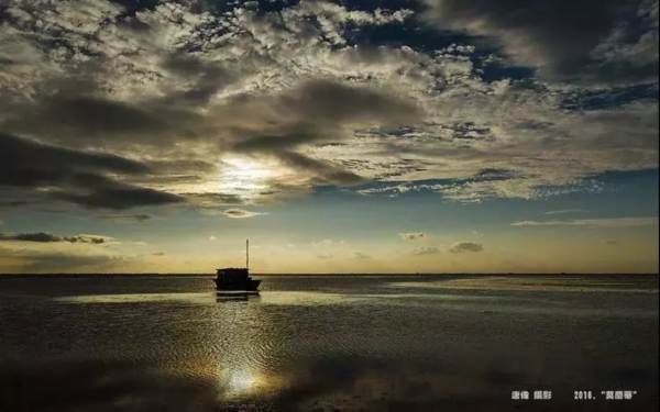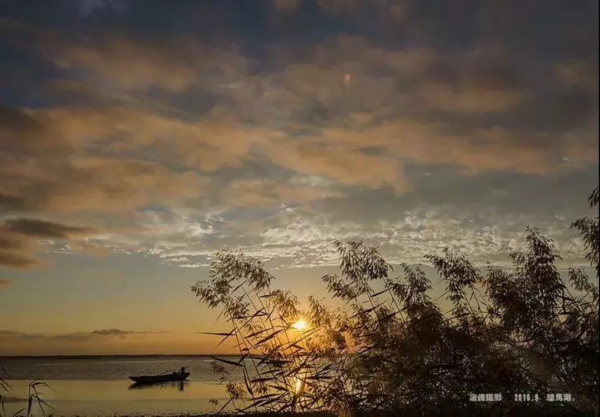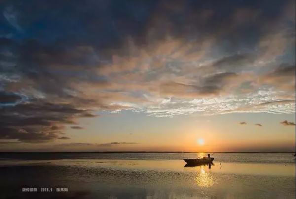 云、日、湖,构成一幅古典厚重的画面,充满大自然艺术张力。船是大自然杰作的见证者,也是品鉴者。