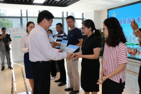 葛启发副市长向本地首批办理旅游年卡的群众代表发放旅游年卡