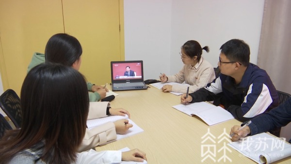 在南京交通职业技术学院,党委理论中心组全体成员集中收看了发布会直播。