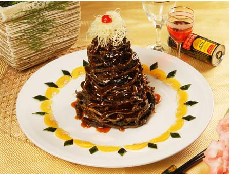 待做好出锅装盘,将脆鳝丝架成塔状,再撒上姜丝做点缀。一道鳝鱼佳肴便完成了。