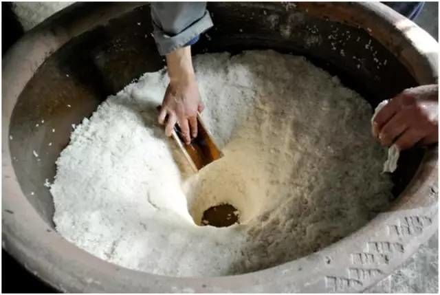俗话说,酿醋先酿酒,糯米发酵成酒醅后加入麸皮、大糠以及醋醅,之后每天要进行翻醅,让其中的酒精含量变少,醋酸含量增多。林田中说,一般二十一天醋酸发酵结束。为什么是二十一,这和醋这个字有关系的。