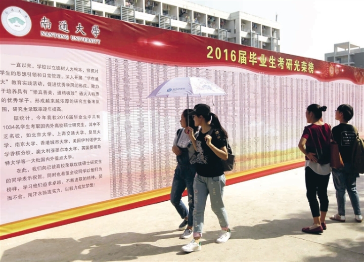 每年,通大均有不少毕业生考取研究生。图为考研榜。