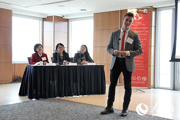 当天,共有来自乔治·华盛顿大学、乔治城大学、弗吉尼亚大学、马里兰大学大学学院分校、乔治·梅森大学、美利坚大学、自由大学、里士满大学等华盛顿地区多所高校的16名学生参加决赛。最终,来自乔治城大学的李在馥和李少轩夺得金奖,同时获得赴南京大学攻读硕士学位的全额奖学金。
