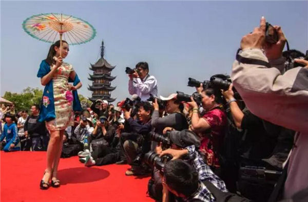 哇,你看看上面这样照片中,这位美丽的小姐姐穿的旗袍可是用我们震泽的丝绸做的哦,你就说美不美吧!