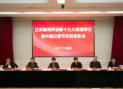 我苏新闻讯(记者/李照 摄影/李昌泰) 11月7日下午,江苏省新闻界创新十九大报道研讨暨中国记者节庆祝表彰会在新华报业传媒集团举行。江苏省新闻工作者协会代表、中央驻苏新闻单位同志、省内各媒体新闻工作者代表汇聚一堂,庆祝自己的节日。省委常委、宣传部部长、统战部部长王燕文出席大会并讲话,代表省委向全省广大新闻工作者致以节日的问候。