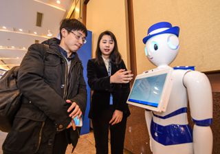 The legal service robot "Xiao Si" can interact intelligently by text or voice to provide users with online and offline legal services. [Photo/Xinhua] |