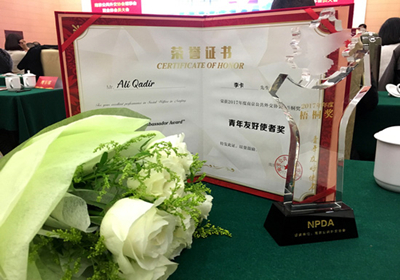 Ali Qadir from Pakistan, a Chinese Government Scholarship winner who now pursues a master’s degree of international business and trade at NUAA, was named as the “Youth Ambassador” of the award.