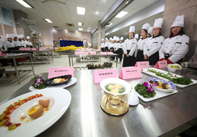 Students from Nanjing University of Chinese Medicine introduce their herbal cuisines. [Photo/eastday.com]
