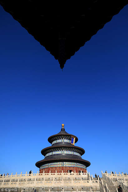 2017年12月22日,蓝天下的北京天坛。