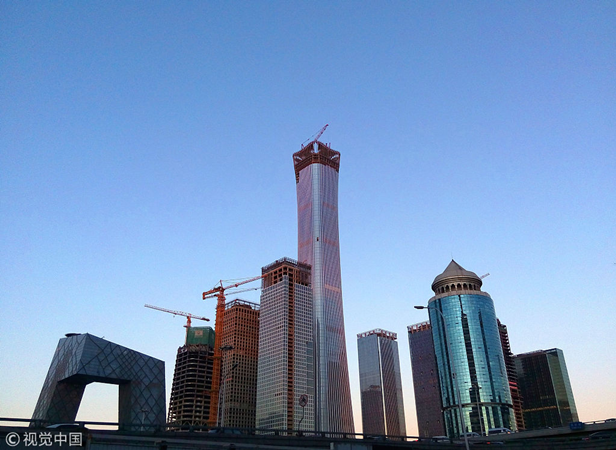 2017年12月20日,蓝天下的北京CBD中心区。