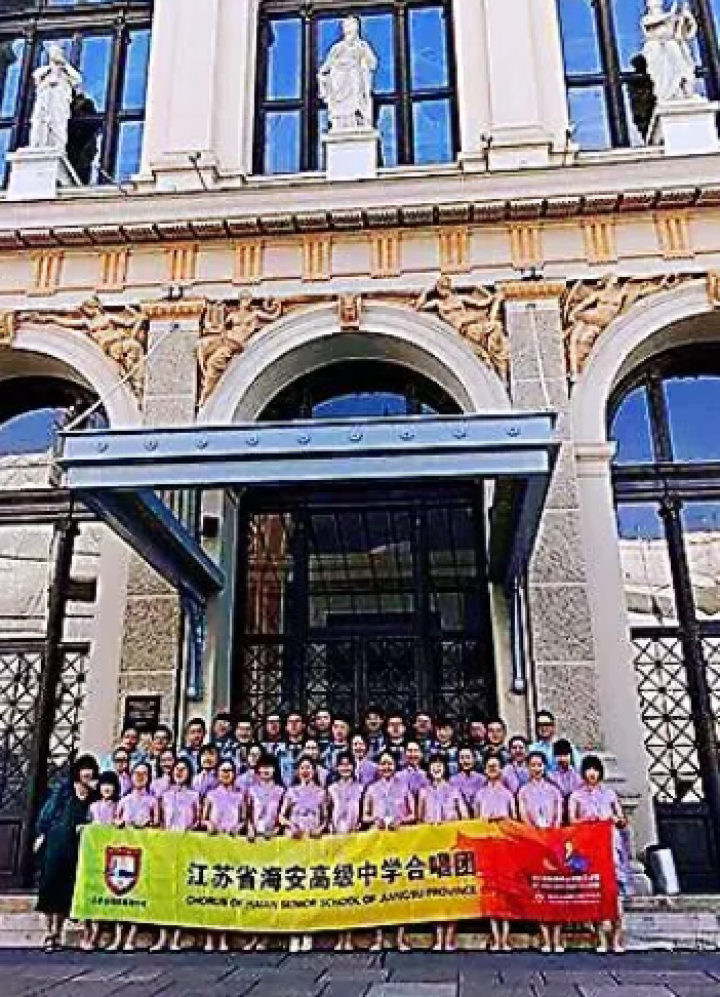 7月30日,海安高级中学合唱团应邀参加2018年世界中小学艺术节,登上了世界顶级音乐殿堂——维也纳金色大厅的舞台“实力亮嗓”,在德国斯图加特音乐厅与来自世界各地的合唱团“过招切磋”,最终斩获合唱类金奖,储小琴老师荣获最佳指挥奖。