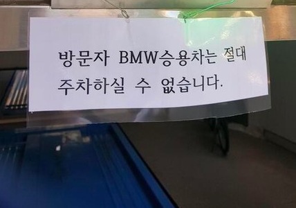 首尔某停车场贴公告:来访者的BMW车绝对不能停。