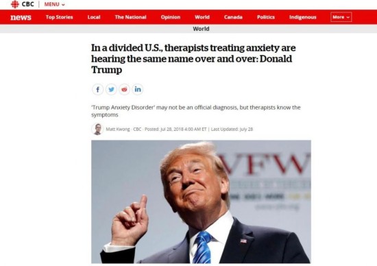 7月底,加拿大广播公司刊登了这样一篇文章。标题很显眼:在已经撕裂的美国,治疗焦虑症的医生总是反复听到同一个名字:
