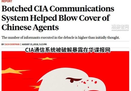 美国媒体2017年5月曾曝出猛料,美国中央情报局(CIA)在华各地谍报网于2010年至2012年间被瓦解,导致30多名情报人员被快速准确地找到。