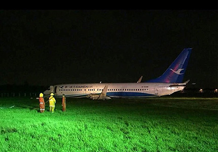厦航客机在马尼拉机场滑出跑道。视觉中国 图