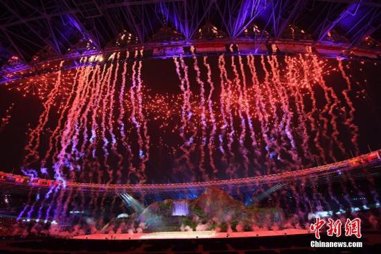 8月18日,第十八届亚运会在印尼首都雅加达开幕。图为开幕式现场。 中新社记者 侯宇 摄