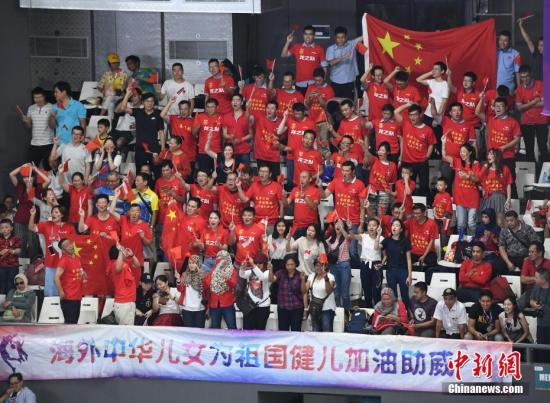 图为中国观众为中国女排加油助威。中新社记者 侯宇 摄