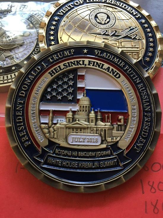 报道称,白宫纪念品商店网站上尚未登出纪念币的照片。但美国《纽约时报》一名记者沃格尔(Kenneth Vogel)在自己的推特上登出了纪念币照片,并写道:“我们仍然不知道特朗普与普京到底达成了什么共识。但我可以告知,白宫通讯联络办公室的确已经发行了纪念币以纪念这一事件。”