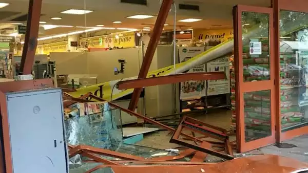 去年12月的一个深夜,卡塔尼亚省贾雷(Giarre)的一家超市“Famila di Giarre ”遭遇了挖掘机破坏。一伙歹徒从市中心一处工地上偷来一辆挖掘机,直接冲破了超市的金属卷帘门,企图偷盗超市里镶嵌在一堵墙上的保险柜。未料在强行破坏墙壁时,挖掘机发生了故障,这次抢劫行动从而拖延了几分钟。宪兵接到超市的入侵警报后赶来,这伙歹徒见势逃走,保险柜才未遭抢劫。