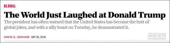 不过论起标题,《大西洋月刊》最为“简单粗暴”,直接说《特朗普被全世界笑话了》。文章观点与《华盛顿邮报》相似,但在此基础上无情地补了一句:至少特朗普在某些方面还是能在全球范围内“一呼百应”的,那就是“搞笑”。