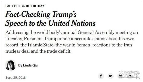 至于有多“谎话连篇”,《纽约时报》接力报道,指出特朗普演讲中有关“打击恐怖主义”、“中东政策”、“对伊朗关系”、“贸易关系”、以及“美国公共政策”方面的表述,没一个说对了。